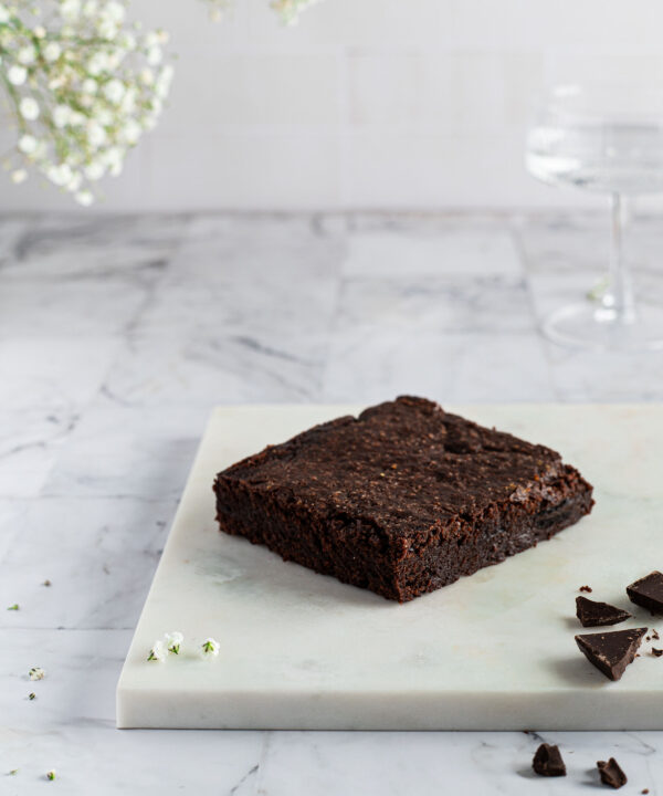 Veganski brownie z drožmi, ki se kar stopi v ustih. Na voljo tudi z okusi. Kos je velikosti 10×10 cm (cca 250 g).